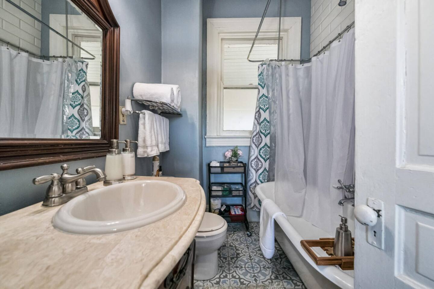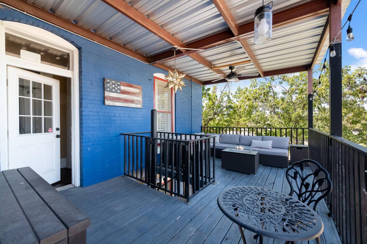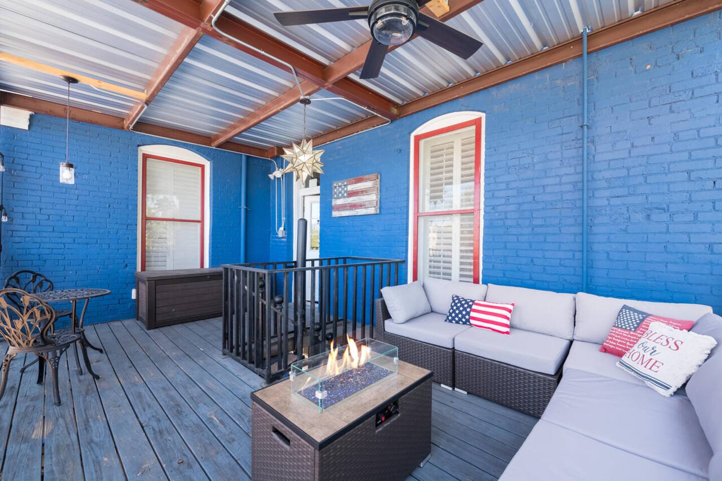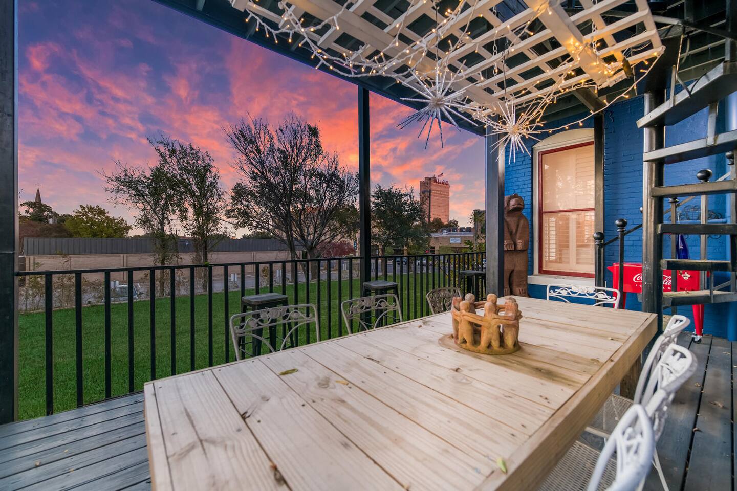 This is a historic home with lots of updated amenities. This house has 7 outdoor patio and deck areas to allow you to enjoy the beautiful Waco weather. Bathrooms are located on each floor for your convenience. The house originally only had one bathroom on the second floor. The original second-floor bathroom also has a clawfoot tub. Historical Bathrooms are usually smaller and the clawfoot tub is usually higher than a modern tub. TV's are located in every bedroom so you can cuddle up & enjoy a movie after a long day & night of enjoyment.