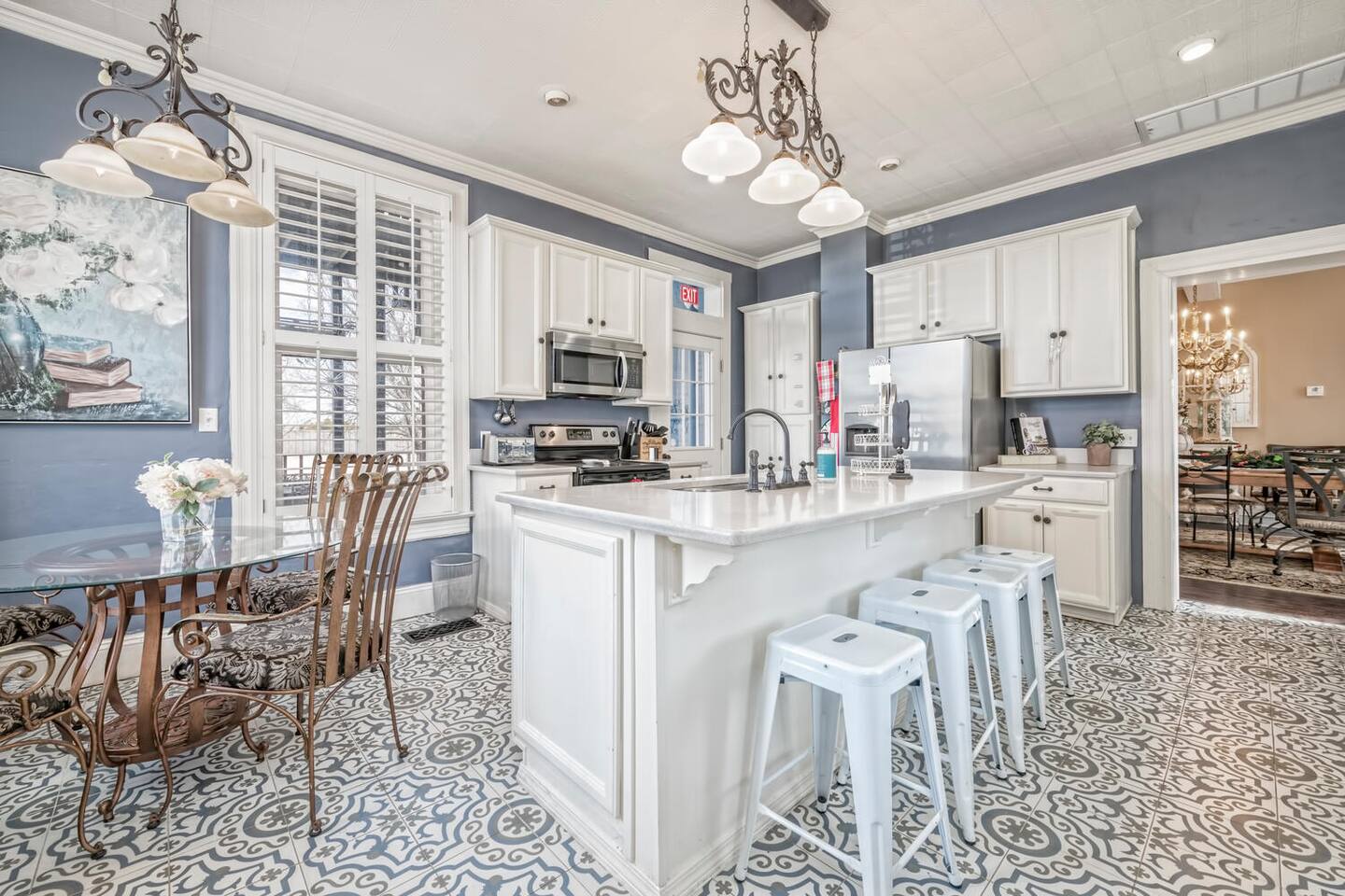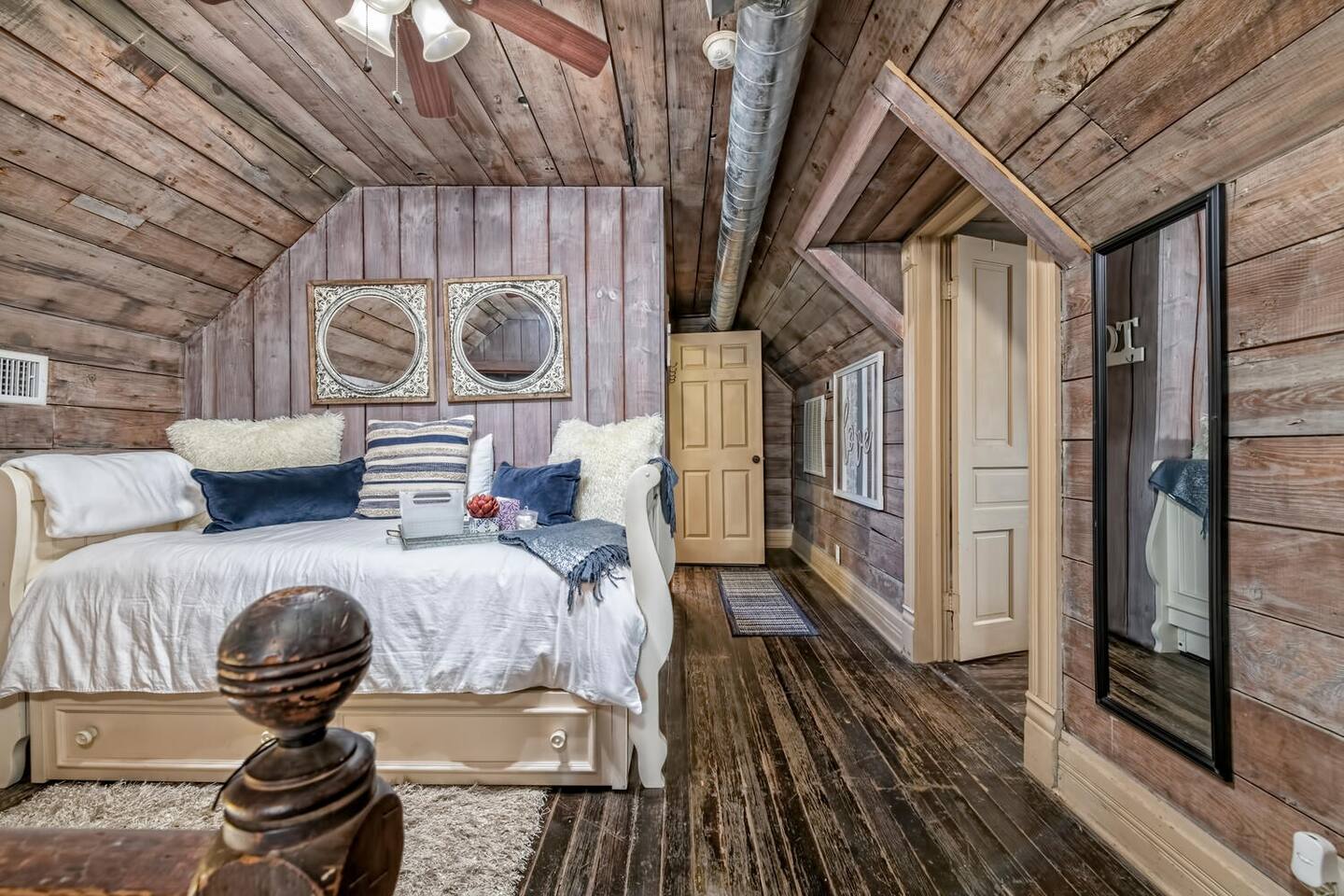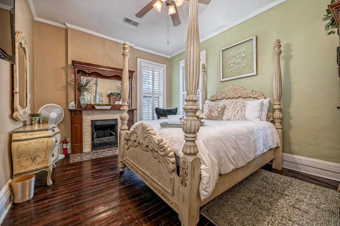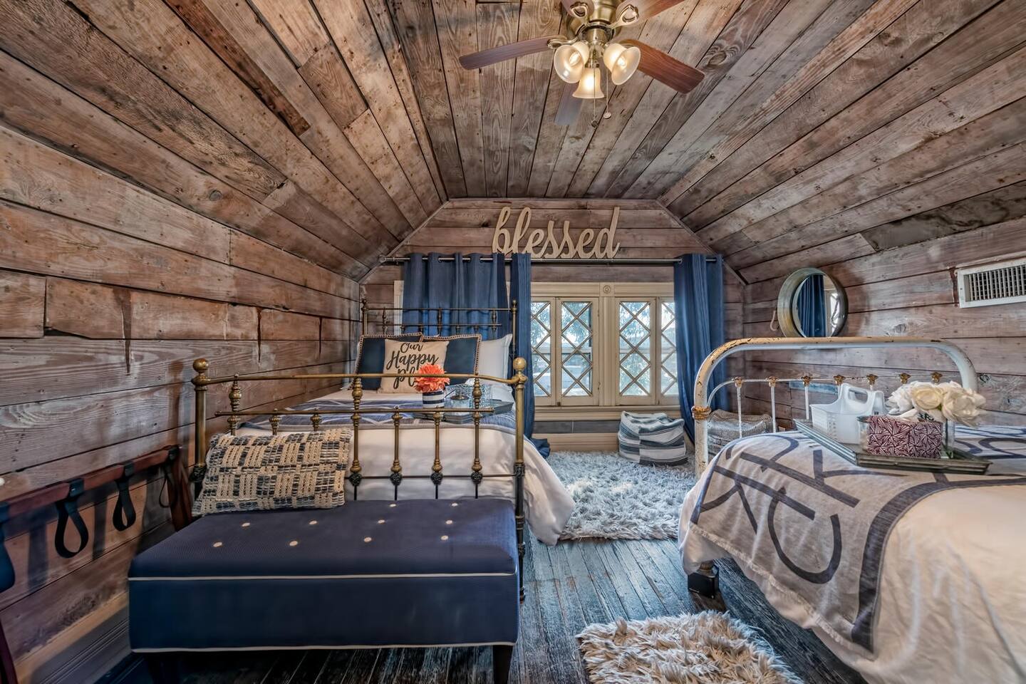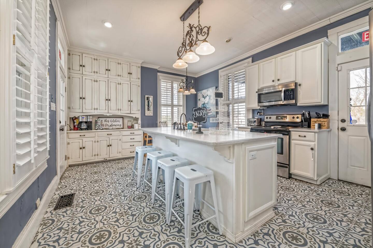 This is a historic home with lots of updated amenities. This house has 7 outdoor patio and deck areas to allow you to enjoy the beautiful Waco weather. Bathrooms are located on each floor for your convenience. The house originally only had one bathroom on the second floor. The original second-floor bathroom also has a clawfoot tub. Historical Bathrooms are usually smaller and the clawfoot tub is usually higher than a modern tub. TV's are located in every bedroom so you can cuddle up & enjoy a movie after a long day & night of enjoyment.