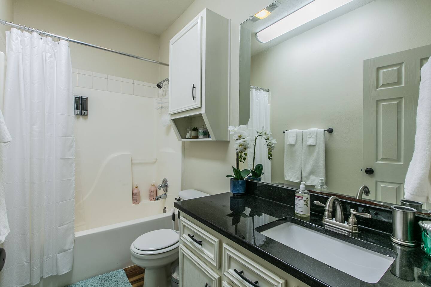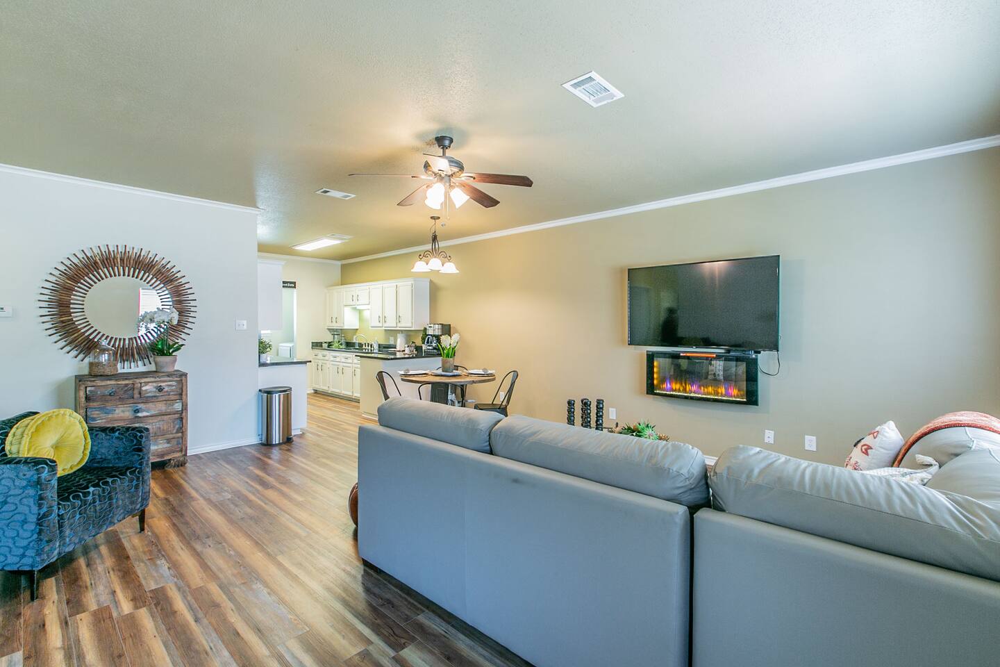 Spacious and with all the amenities you will need for your stay in Waco: Wi Fi, Washer and Dryer, TVs with local channels, Netflix, Amazon Prime Videos, and much more. We also have ample parking in a gated community. The Livingroom and all bedrooms have televisions. A printer is also available for your printing needs.